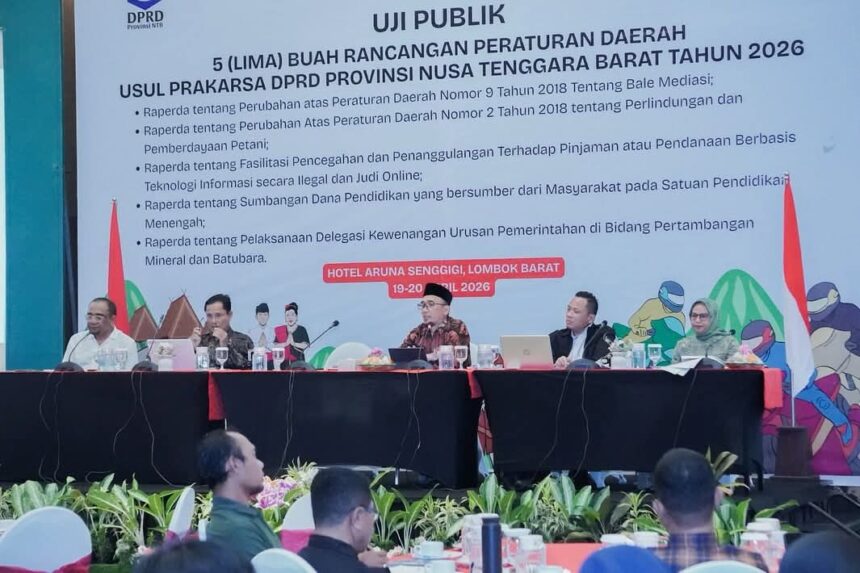 Kegiatan yang berlangsung di Hotel Aruna Senggigi pada 19 April 2026 ini dibuka Ketua DPRD NTB dan dihadiri jajaran pimpinan dewan, Badan Pembentukan Peraturan Daerah (Bapemperda), serta perwakilan Organisasi Perangkat Daerah terkait.